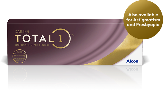 DAILIES TOTAL1® features Water Gradient Technology that forms a gentle cushion of moisture with nearly 100% water at the outermost surface† of the contact, for exceptional comfort and breathability. Exclusive SmarTears® Technology releases an ingredient found naturally in tears to help stabilize the lipid layer of the tear film.