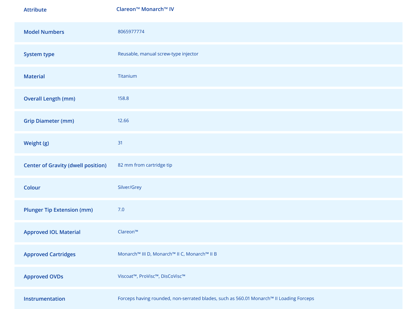 2. Clareon® Monarch® IV IOL Delivery System Directions for Use.
