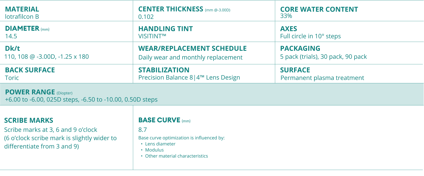 AIR OPTIX™ Plus HydraGlyde™ for Astigmatism Technical Specifications