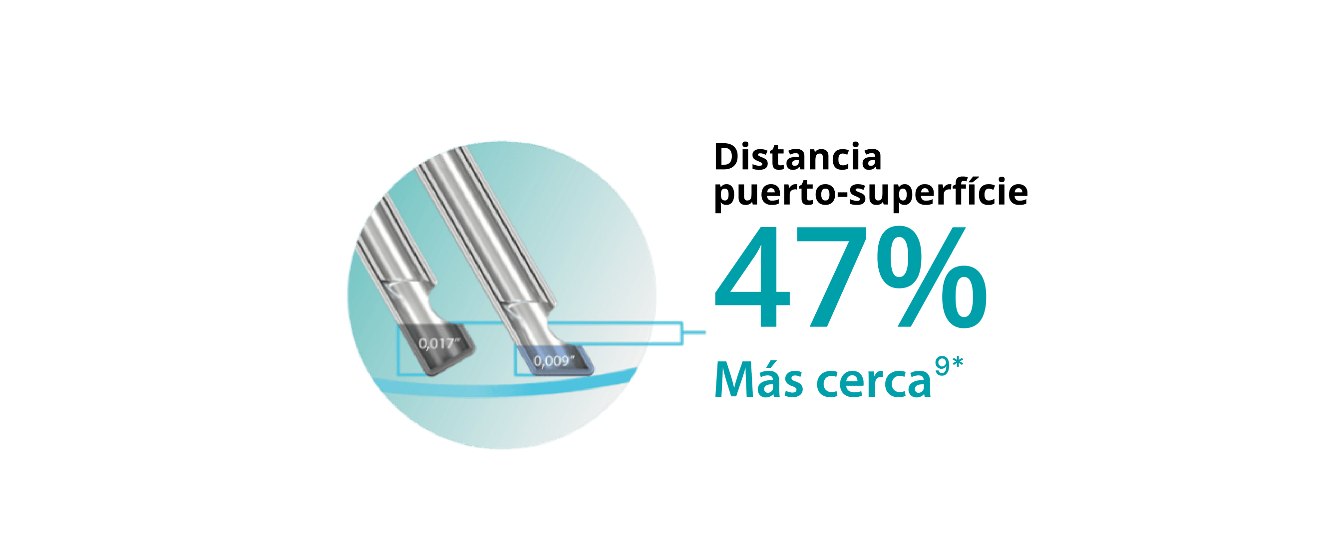 El diseño de punta biselada de HYPERVIT™ mejora el acceso al plano tisular gracias a la reducción de la distancia entre el puerto y la superficie.9*