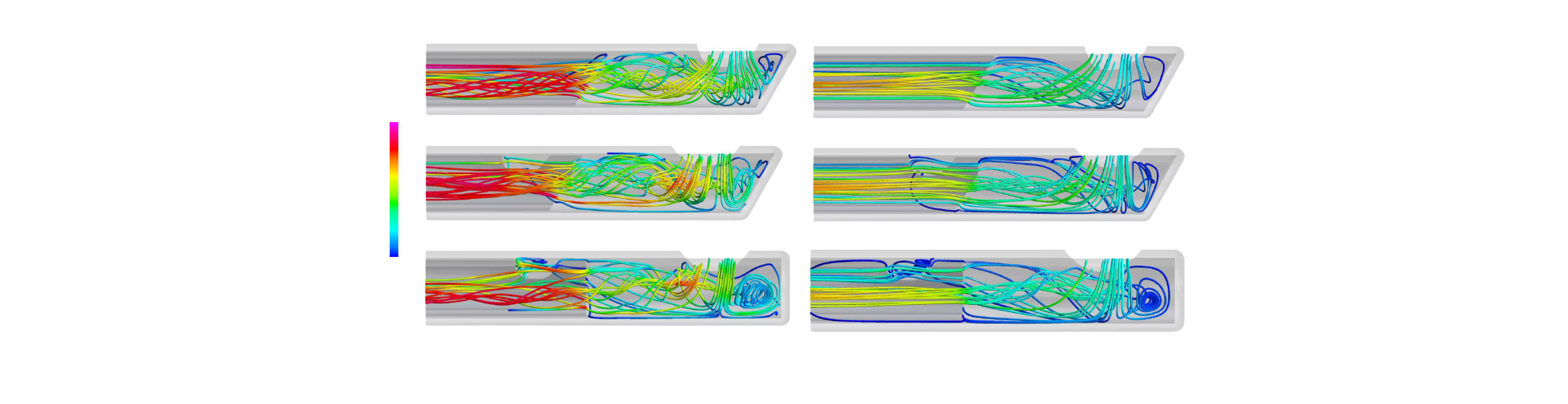 La forma biselada contribuyó a un menor flujo de retorno al reducir el tamaño de la zona de flujo muerto.