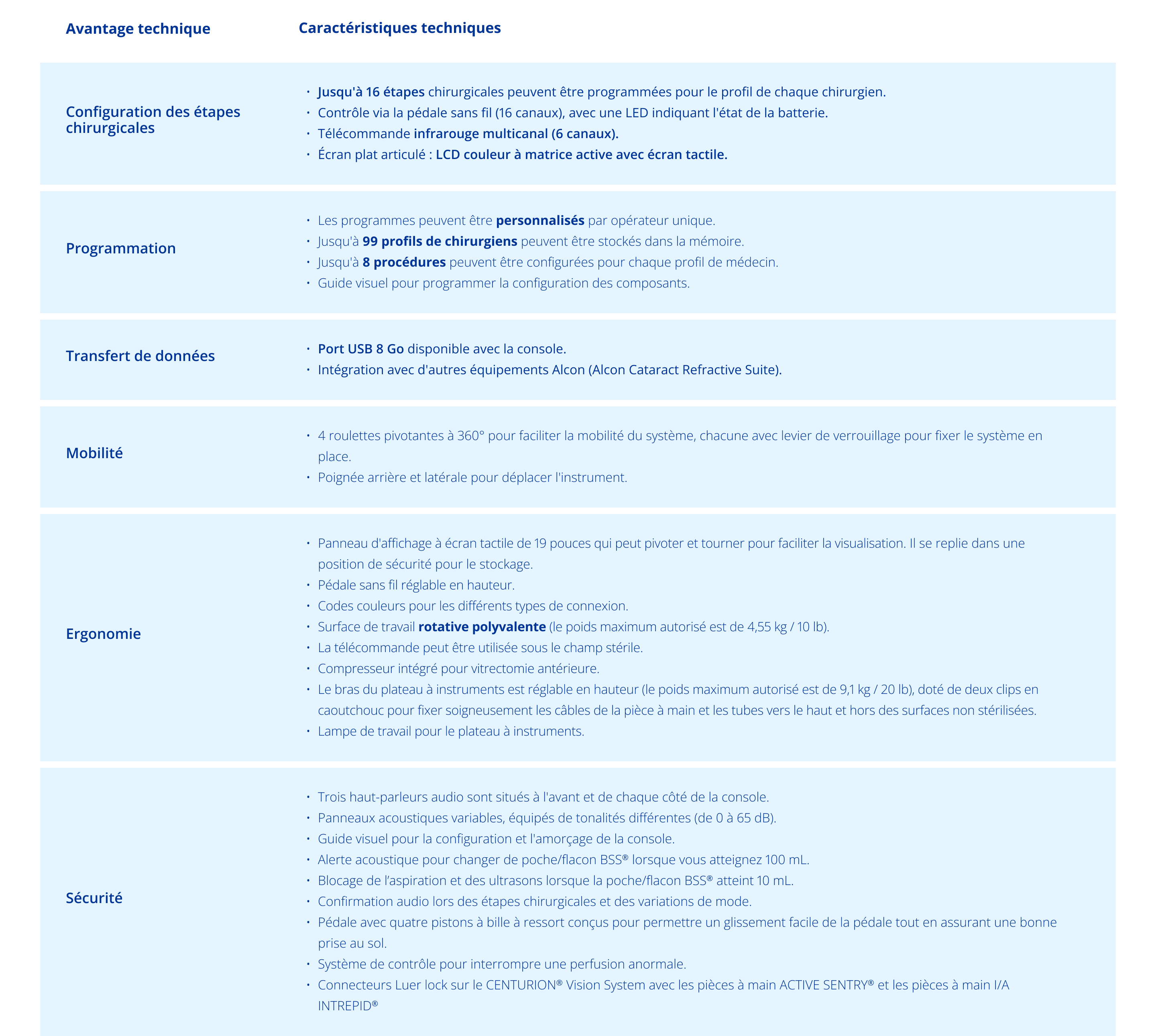 L’interface graphique du CENTURION® Vision System est conçue pour être intuitive, avec une courbe d'apprentissage réduite pour le chirurgien et le personnel du bloc opératoire: