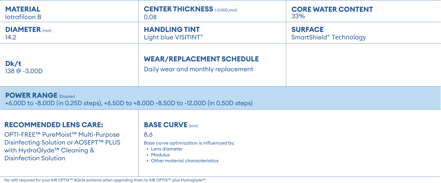 AIR OPTIXTM Plus HydraGlydeTM Technical Specifications
