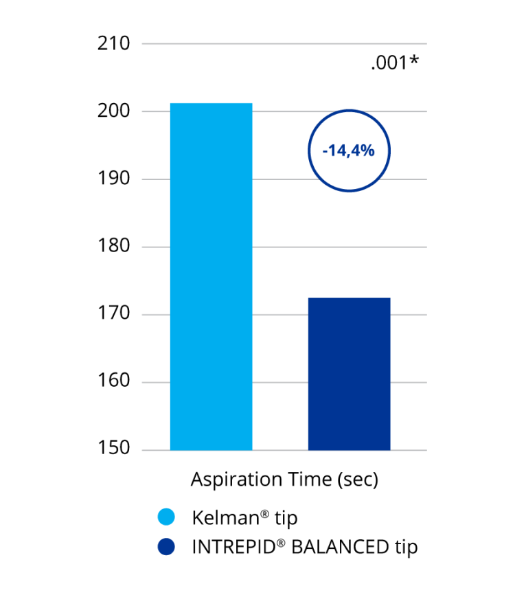 The INTREPID® BALANCED Tip provides better fluidics performance compared to Kelman® tip, resulting in2,9,11: