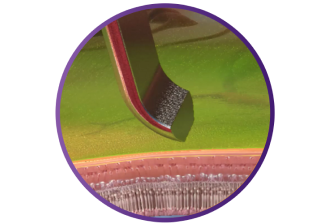 SHARKSKIN® ILM forcep의 레이저 절삭으로 만든 미세구조는 움직임에 의해 발생하는 마찰을 개선하도록 엔지니어링 되어 외상 없이 ILM 박리가 가능합니다.1,2