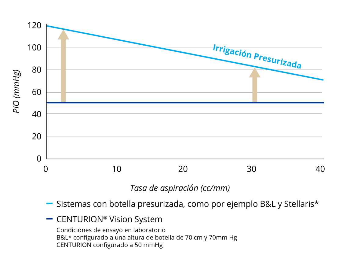 (PIO 40 mmHg; Ajuste del vacío de 600 mmHg; Tasa de aspiración 30cc/min; 40 mmHg=54 cm H2O)