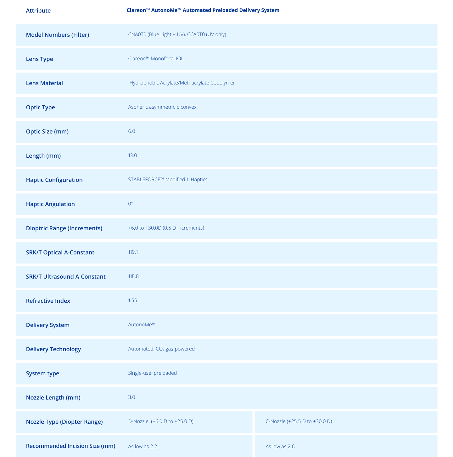 *Please refer to relevant product IFU for qualified combinations of cartridges and their use with Clareon™ family of IOLs in Monofocal, Toric, PanOptix™, PanOptix™Toric, and Vivity™